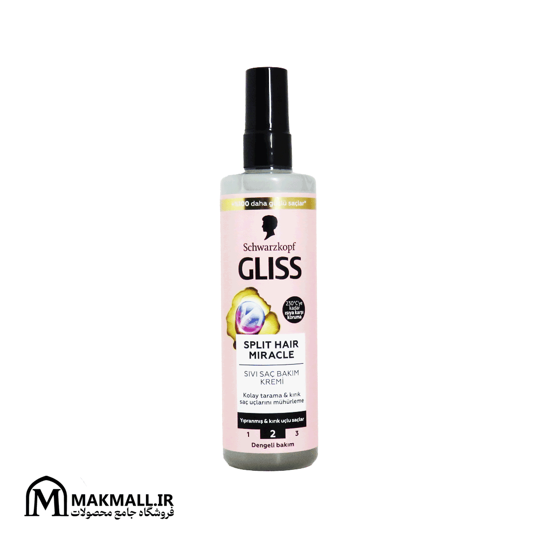 اسپری دو فاز گلیس اسپلیت هیر میراکل (Schwarzkopf Gliss Split Hair Miracle Sıvı Saç Bakım Kremi 200ml)، با بارکد 3838824421377 یکی از جدیدترین فرمولاسیونهای تخصصی سال ۲۰۲۴ برند Schwarzkopf برای مقابله با موخوره، رفع گرهخوردگی و افزایش سلامت موهای آسیبدیده است. این محصول جذب سریع، بینیاز از آبکشی و ایدهآل برای افرادی که انتهای موهایشان دو یا چند شاخه شده و دچار ضعف ساختاری است، فرموله شده است.