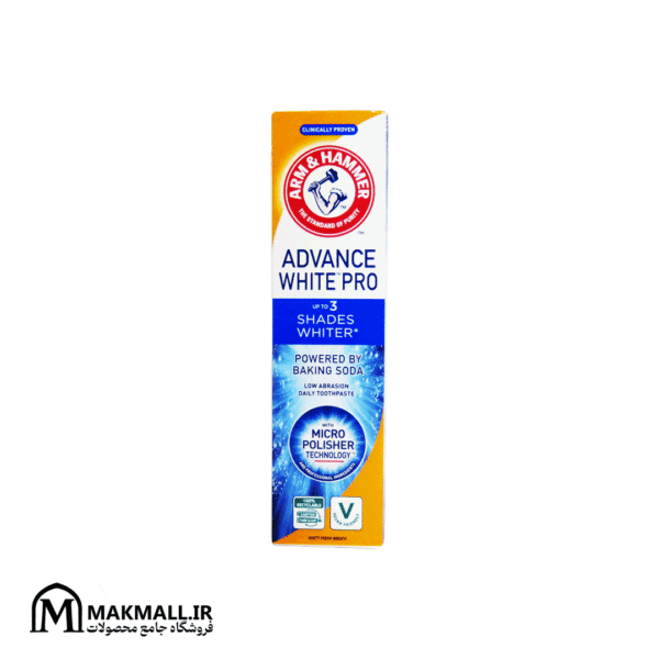 خمیر دندان سفیدکننده ارم اند هامر با تکنولوژی منحصربهفرد و ترکیبی از قدرت جوششیرین، دندانهای شما را تا سه درجه سفیدتر میکند و در هر بار استفاده، لبخندتان را سالم، درخشان و مطمئن نگه میدارد. اگر به دنبال یک خمیر دندان حرفهای برای سفیدکردن دندان و محافظت طولانی مدت از مینای آن هستید، Advance White Pro انتخابی متفاوت و سطحبالا بین برندهای معتبر دنیاست.
