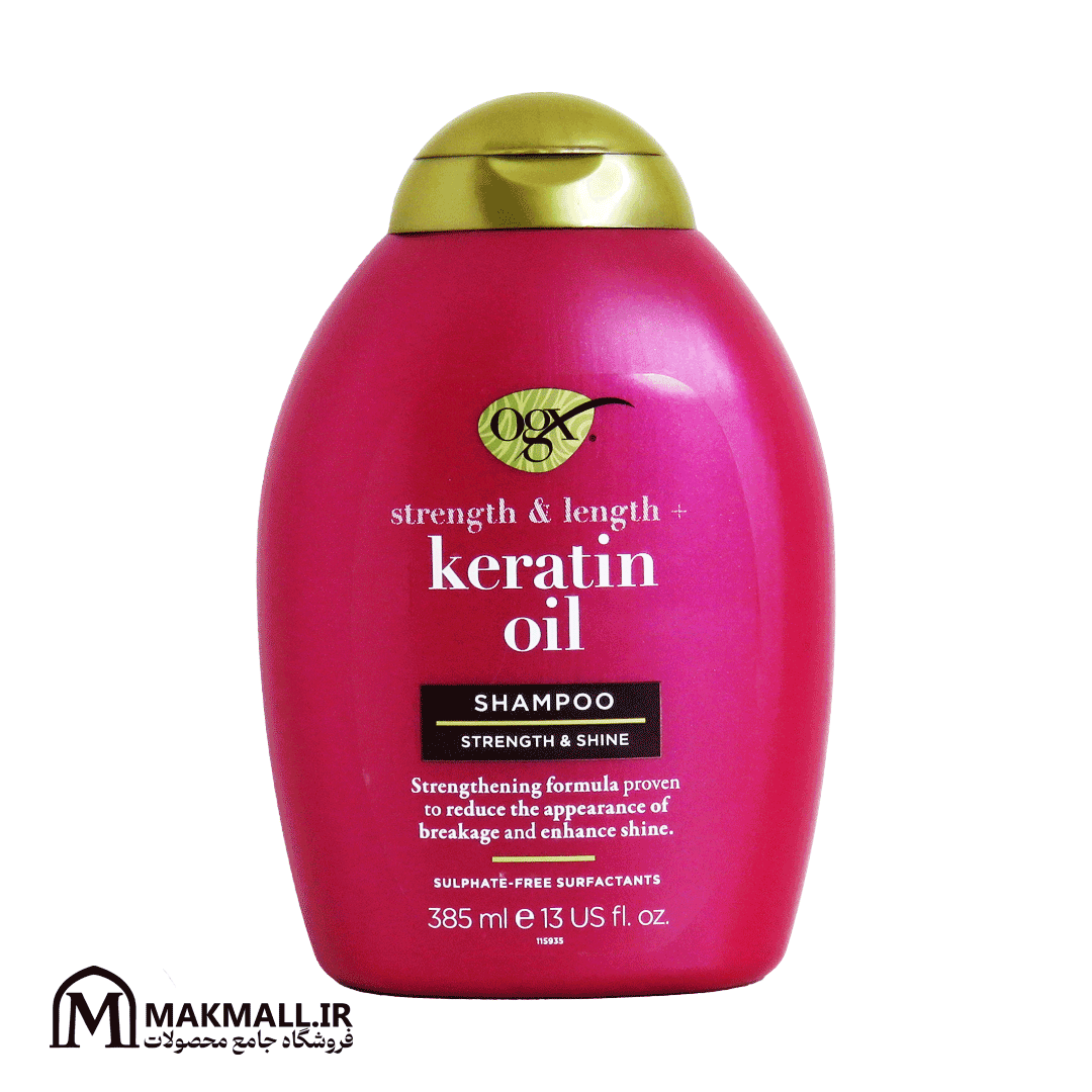 “name”: “شامپو روغن کراتین او جی ایکس فاقد سولفات 385 میل | OGX Keratin Oil Sulfate-Free Shampoo 385ml”,