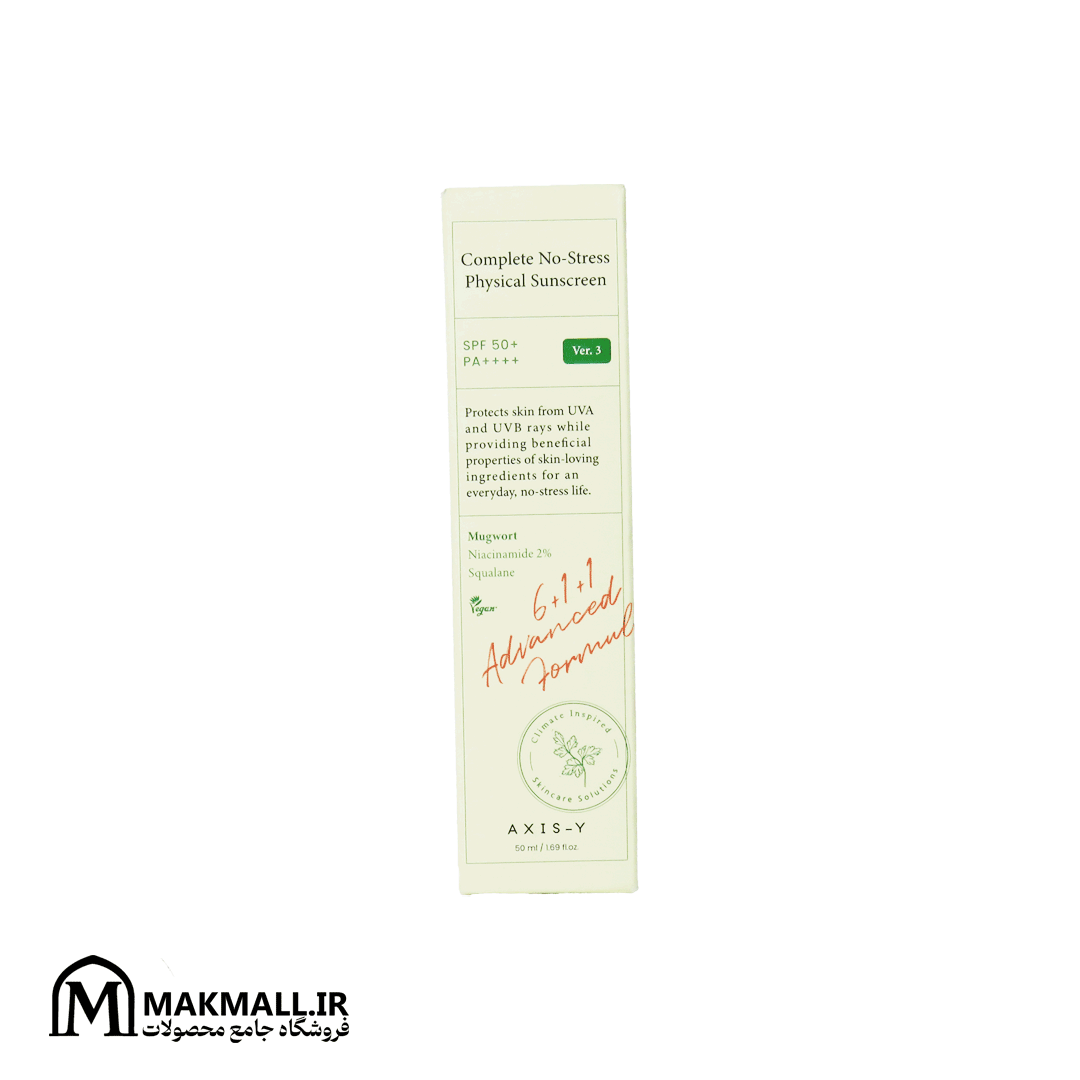 ضد آفتاب فیزیکی اکسیز وای SPF50+ حاوی عصاره آرتمیسیا و نیاکینامید | AXIS-Y Complete No-Stress Physical Sunscreen SPF50+ PA++++