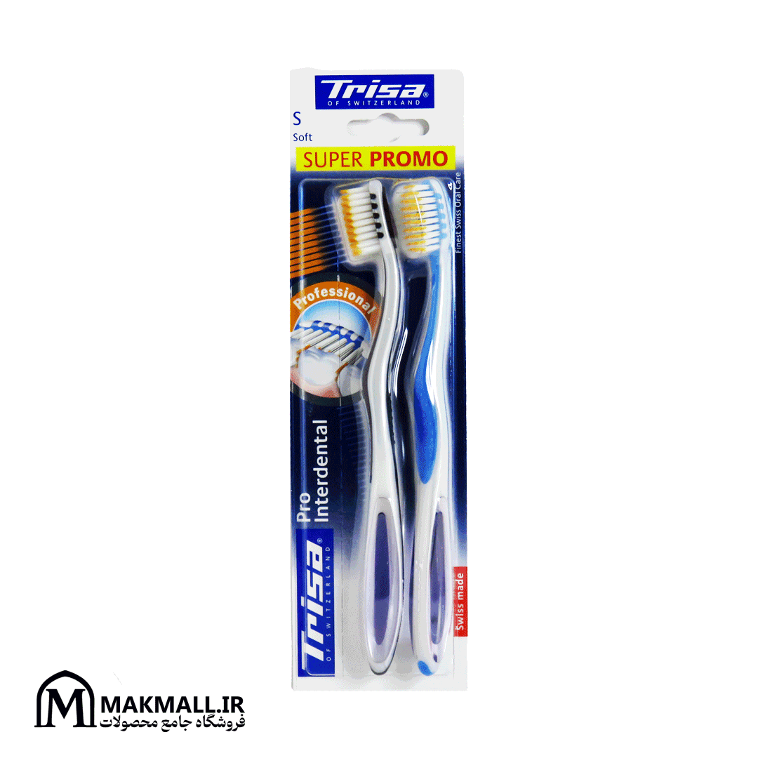 مسواک تریزا دو عددی مدل پرو اینتردنتال، محصول سوئیس از برند Trisa است که با تمرکز بر تمیز کردن فواصل دندانی (Interdental) و پیشگیری از ایجاد پلاک بین دندانها، طراحی شده است. الیاف چندسطحی با برش تخصصی، و دسته ارگونومیک ضد لغزش، استفاده آسان و موثر را برای هر عضو خانواده ممکن کرده است. علوم جدید دندانپزشکی تأیید میکند که تمیز کردن بین دندانی احتمال ابتلا به پوسیدگی را تا ۳۵ درصد کاهش میدهد .