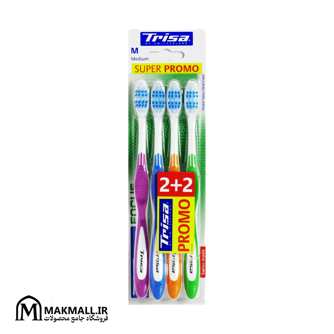 مسواک تریزا 4 عددی متوسط بستهای اقتصادی و تخصصی از برند سوئیسی Trisa است که برای خانوادهها و افرادی که به بهداشت دهان روزانه اهمیت میدهند، طراحی شده است. این بسته با تضمین کیفیت اصیل سوئیس، دوام برسها و طراحی ارگونومیک، تجربهای مطمئن و بهصرفه را ارائه میدهد.