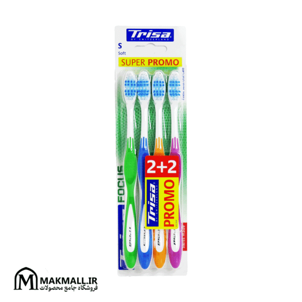 مسواک فوکوس نرم تریزا مدل پرومو ۲+۲ (Trisa Focus Soft Super Promo) بستهای اقتصادی و تخصصی با چهار عدد مسواک نرم برای خانواده یا مصرفکننده حرفهای است.
