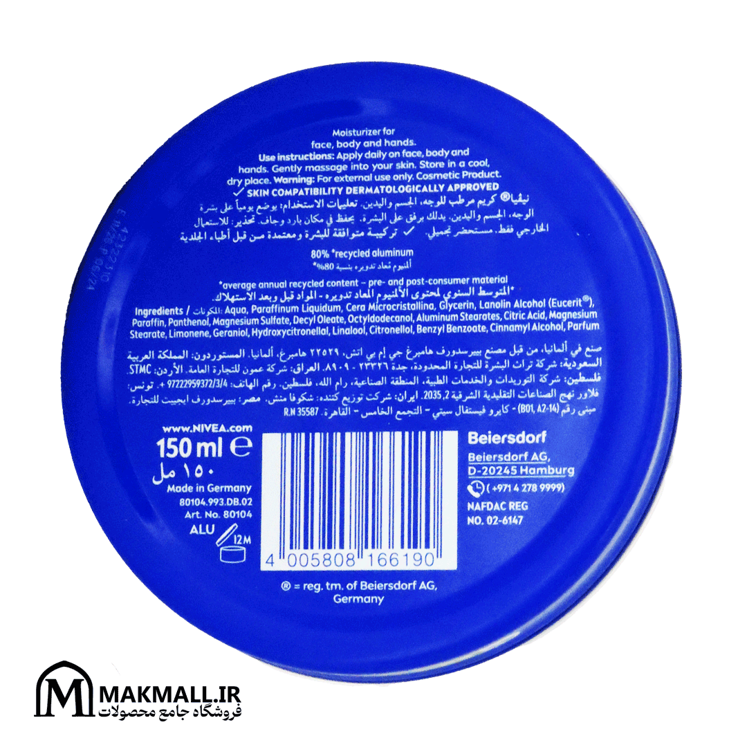 مک مال با سالها تجربه در واردات مستقیم محصولات نیوآ، تضمین میدهد که کرم نیوآ 150 میل دریافتی شما 100% اصل و تازه است. تمامی محصولات از منابع رسمی و معتبر تهیه میشوند.